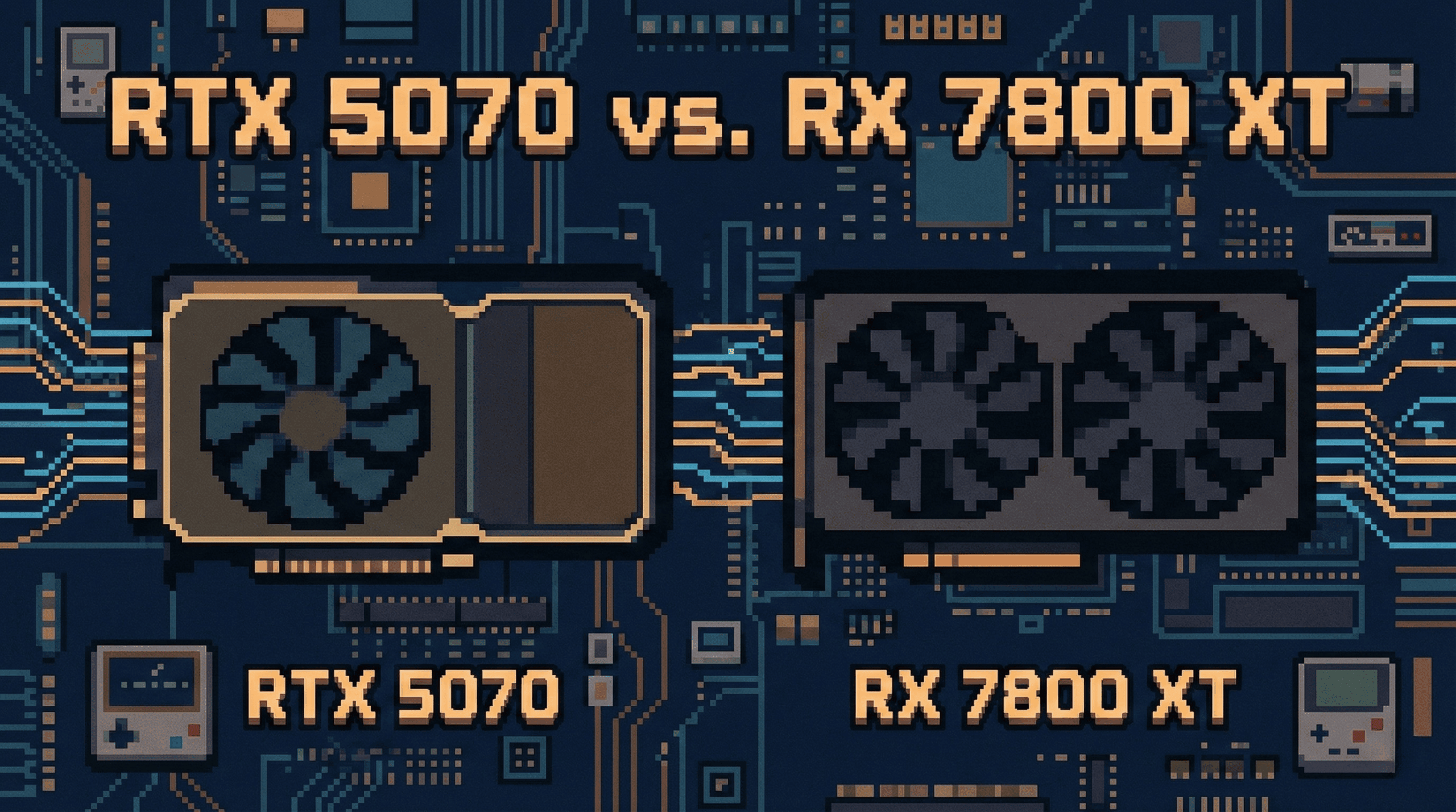 Auf dem Papier wirkt die RTX 5070 moderner und schneller. Auf dem Papier hat die RX 7800 XT mehr Speicher. Die Realität? Komplizierter.